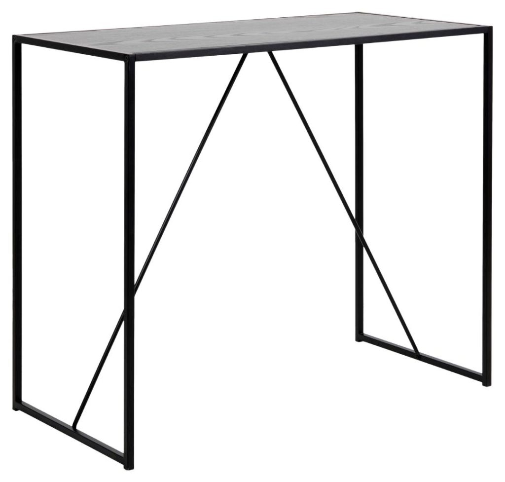Geef je ruimte een moderne uitstraling met de strakke Seaford rechthoekige bartafel. Voorzien van een ruwe melamine top in zwart essen en een mat zwart gepoedercoat stalen onderstel met voetensteun. Afmetingen: 120x60x105 cm. Ideaal voor stijlvolle bijeenkomsten.