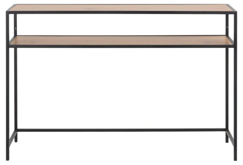 Verbeter je ruimte met de elegante Seaford console tafel. Met een mat wildeiken blad en plank, gedragen door een stijlvolle matzwarte poeder gecoate stalen basis. Afmetingen: 120x35x79 cm.