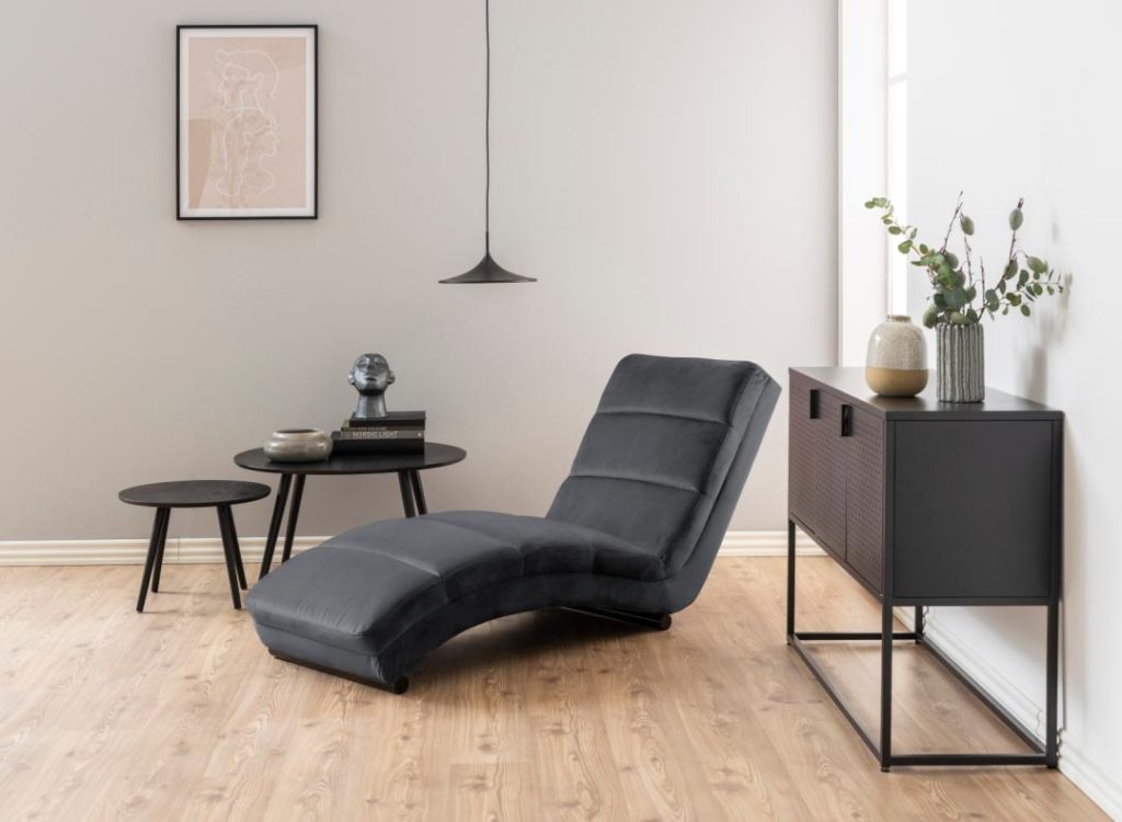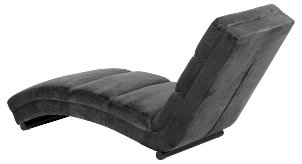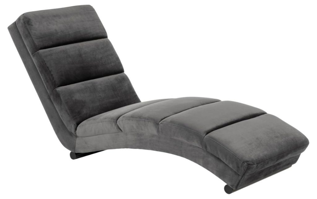 Trakteer jezelf op een moment van ontspanning op deze elegante chaise longue. Het gebogen ontwerp en pluche grijze fluweel beloven zowel stijl als comfort. Compleet met chique zwarte metalen poten.