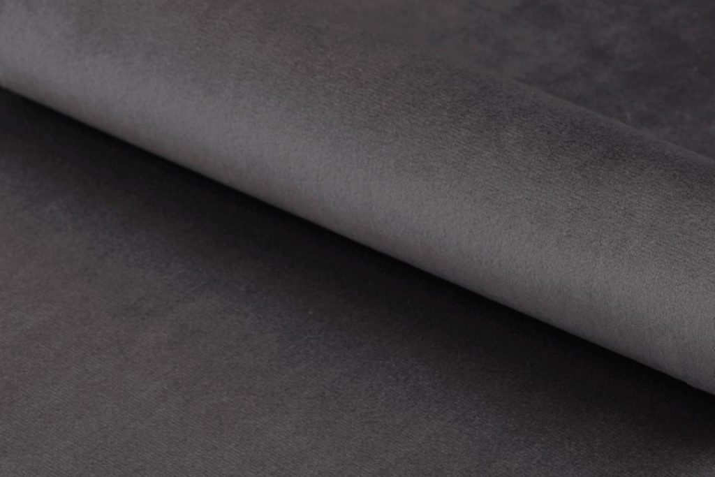 Luxe ligbed met strak design in donkergrijs Vic-stof. Stijlvolle matzwarte stalen basis met horizontale stiksels. Afmetingen: 60x170x82 cm.