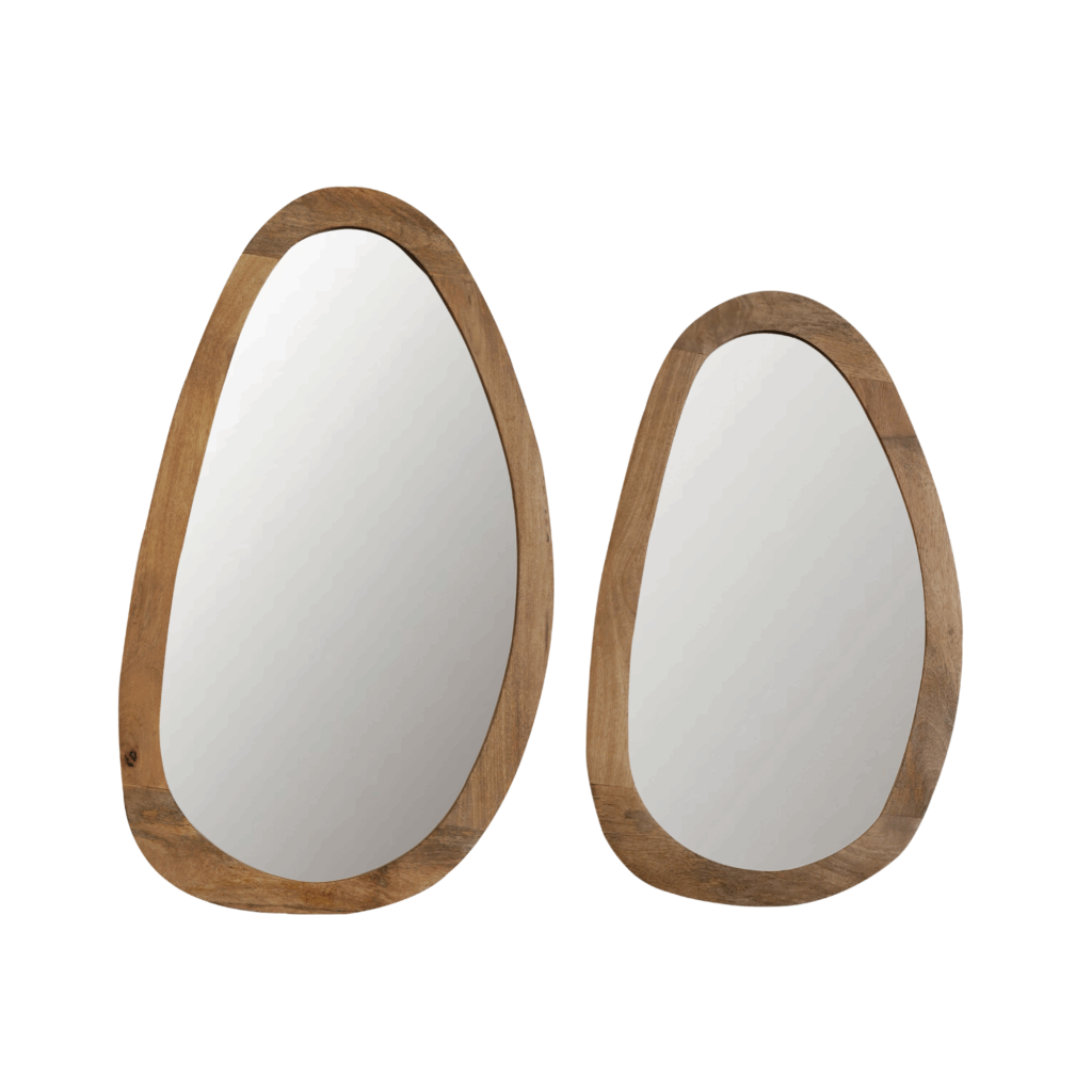 Spiegel Lou is vervaardigd uit hoogwaardig mangohout met een blanke lakafwerking. De organische vorm voegt een unieke en stijlvolle touch toe, waardoor de spiegel een verfijnde uitstraling heeft. Afmetingen: 60 cm breed, 4 cm diep, 100 cm hoog. Onderhoud: afnemen met een licht vochtige doek.