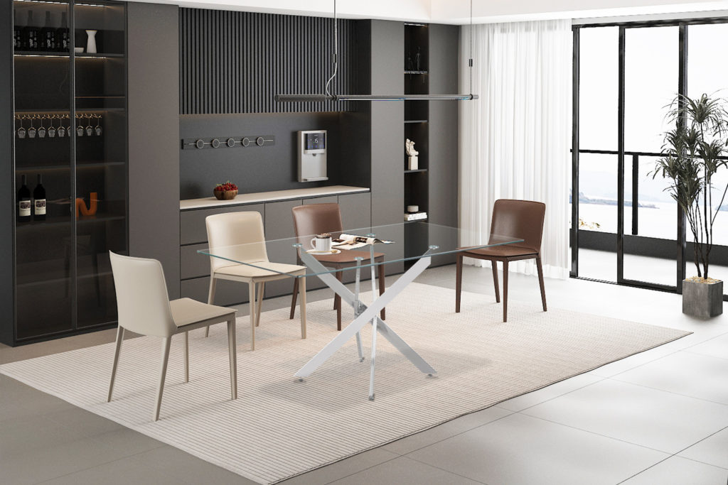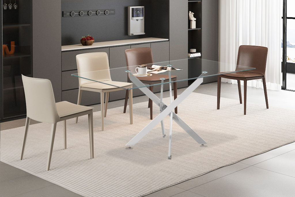 • Tafel 'Lasi' 160 cm Glas, Poten Chroom (2c)