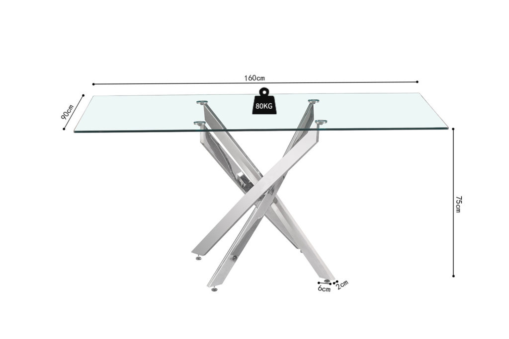 Tafel 'Lasi' 160 cm Glas, Poten Chroom