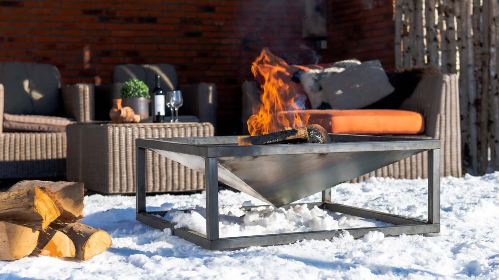 De RedFire Tervo vuurschaal combineert strakke, krachtige rechthoekige lijnen met een gedurfde driehoekvorm. In die ruim bemeten driehoek brandt uw haardhout krachtig en gecontroleerd, voor stijlvolle warmte en sfeer buiten.
