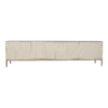 De TV-standaard Madison Sand is gemaakt van licht gezandstraald mangohout met een stevig metalen frame en bronzen afwerking. De greeploze deuren openen gemakkelijk met een push-to-open systeem en hebben een verticaal lattenpatroon met sand finish. Onderhoud: Afnemen met een lichtvochtige doek.
