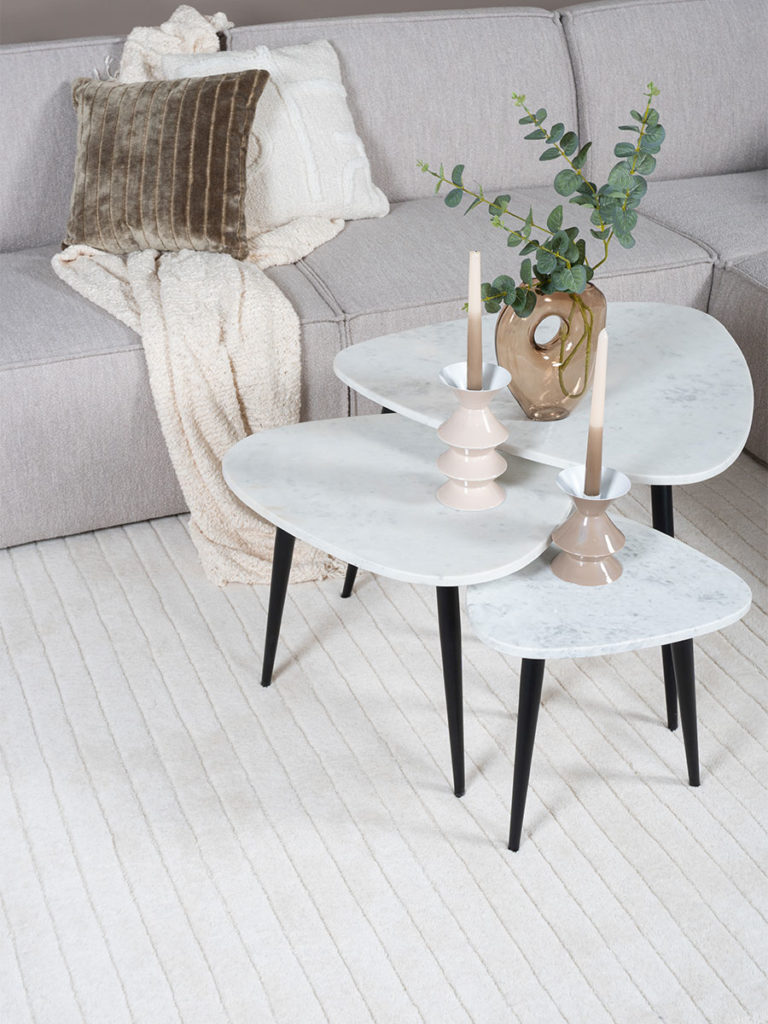 Ontdek het comfort van ons vloerkleed Lori, vervaardigd uit 100% hoogwaardige wol. Met zijn zachtheid aan de voeten biedt dit vloerkleed een luxe ervaring in elke kamer. Het lijnenpatroon wordt subtiel gecreëerd door het hoog-laag effect, waardoor je een bijzondere textuur aan je interieur toevoegt. Verkrijgbaar in twee neutrale kleuren past Lori perfect in diverse interieurstijlen. Verkrijgbaar in de volgende maten: 160 x 230 cm, 200 x 280 cm en 230 x 330 cm. Tips voor het onderhouden van een wollen vloerkleed: - Het is belangrijk om het vloedkleed te stofzuigen, dit is direct mogelijk vanaf de eerste dag. Let op! Dit kan alleen met de gladde stofzuigermond op een lage zuigstand (zonder roterende borstel). Zo voorkom je dat restjes stof zich hechten en uiteindelijk gaan ophopen tussen het materiaal en kunnen de vezels zichzelf herstellen. - Wol is een natuurproduct, bespuit het vloerkleed ieder kwartaal licht met koud water om de wol in goede conditie te houden. - Om spoorvorming te voorkomen raden wij aan het karpet 1 keer in de 3 maanden 180 graden om te draaien. Daarnaast is het ook goed om het vloerkleed een aantal keer per jaar buiten uit te kloppen.