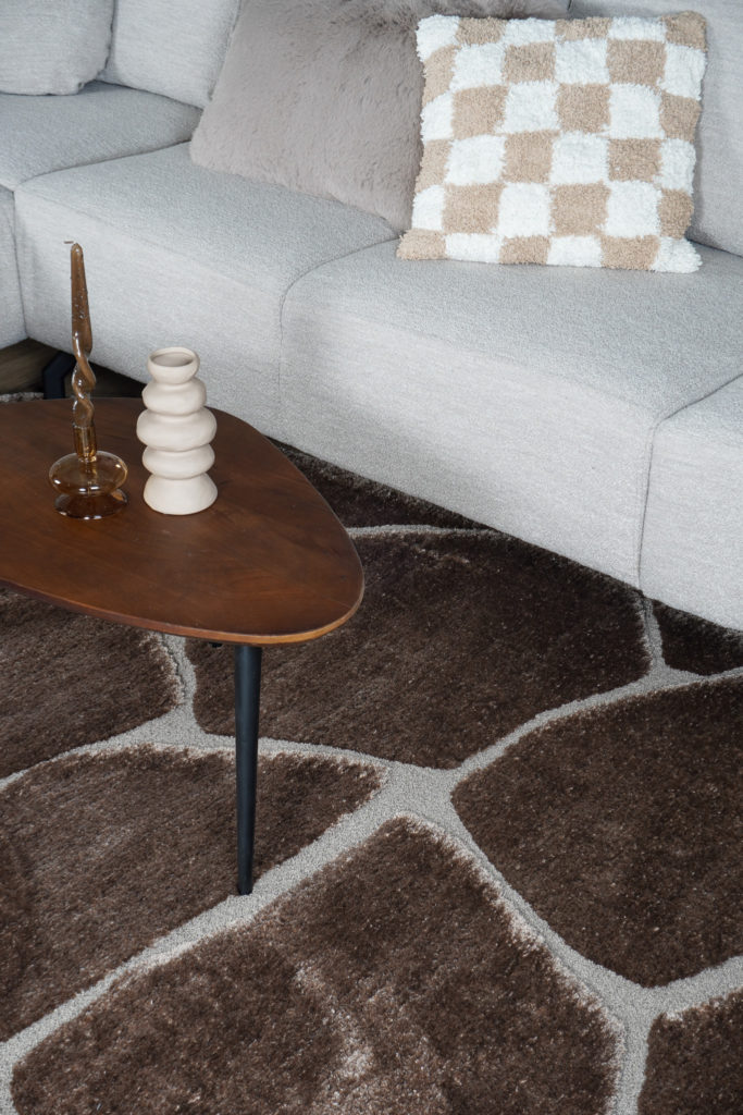 Vloerkleed Macy voegt een uniek accent aan je interieur toe. Met zijn opvallende hoog-laag patroon, geïnspireerd door de vormen van grote keien, brengt Macy een speelse uitstraling in elke ruimte. Dit vloerkleed is ontworpen met oog voor de organische trend, waardoor het perfect past bij moderne interieurs die de natuurlijke elementen omarmen. De warme bruine kleur van Macy zorgt voor een tijdloze uitstraling, waardoor het vloerkleed moeiteloos in verschillende interieurstijlen past. Wat Macy nog specialer maakt, is het gebruik van duurzame materialen. Het kleed is gemaakt van 80% gerecycled polyester en 20% polyester. Verkrijgbaar in de kleuren crème, bruin en beige en in de volgende maten: ø160 cm, 160 x 230 cm, 200 x 290 cm, 240 x 340 cm, Rounded Corners 160 x 230 cm en Rounded Corners 200 x 290 cm.