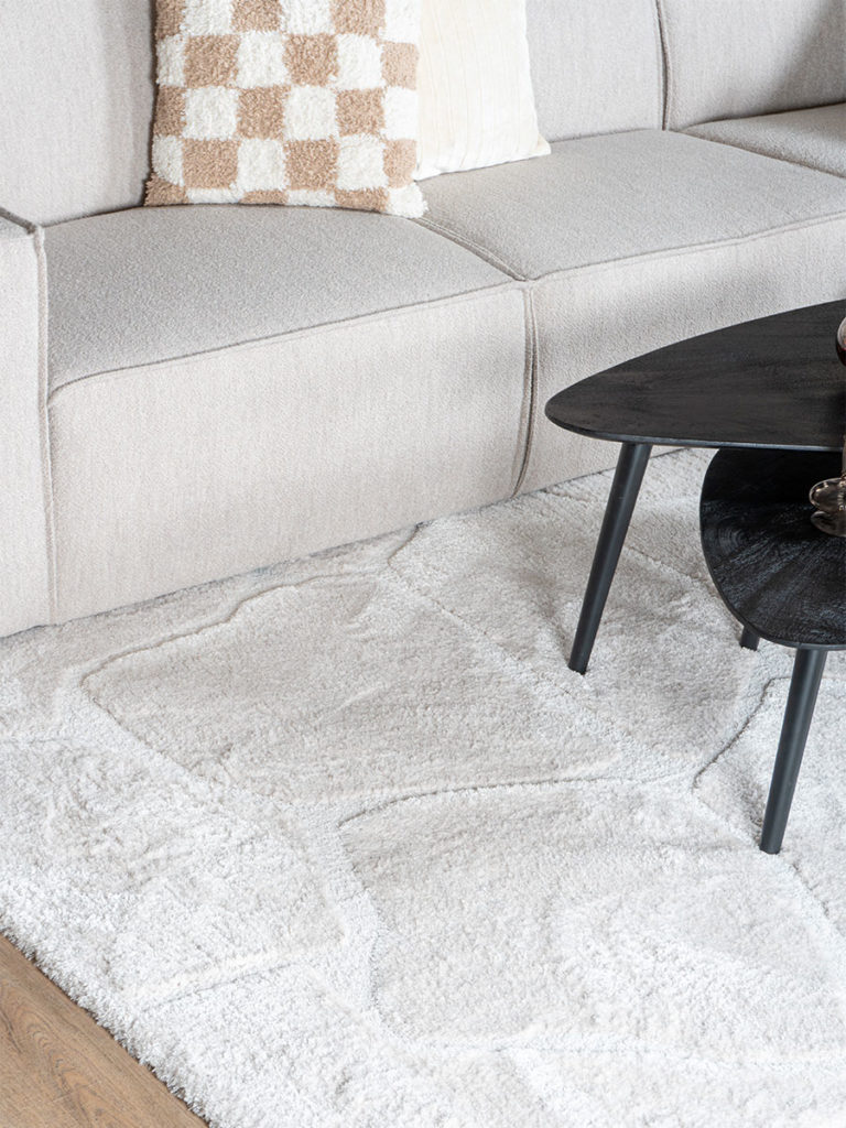 Vloerkleed Macy voegt een uniek accent aan je interieur toe. Met zijn opvallende hoog-laag patroon, geïnspireerd door de vormen van grote keien, brengt Macy een speelse uitstraling in elke ruimte. Dit vloerkleed is ontworpen met oog voor de organische trend, waardoor het perfect past bij moderne interieurs die de natuurlijke elementen omarmen. De neutrale crèmekleurige tint van Macy zorgt voor een tijdloze uitstraling, waardoor het vloerkleed moeiteloos in verschillende interieurstijlen past. Wat Macy nog specialer maakt, is het gebruik van duurzame materialen. Het kleed is gemaakt van 80% gerecycled polyester en 20% polyester. Verkrijgbaar in de kleuren crème, bruin en beige en in de volgende maten: ø160 cm, 160 x 230 cm, 200 x 290 cm, 240 x 340 cm, Rounded Corners 160 x 230 cm en Rounded Corners 200 x 290 cm.