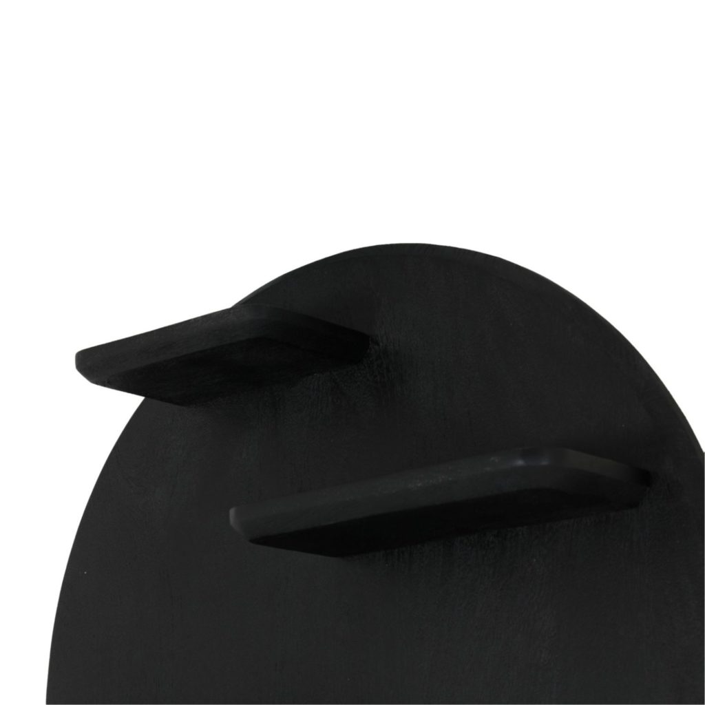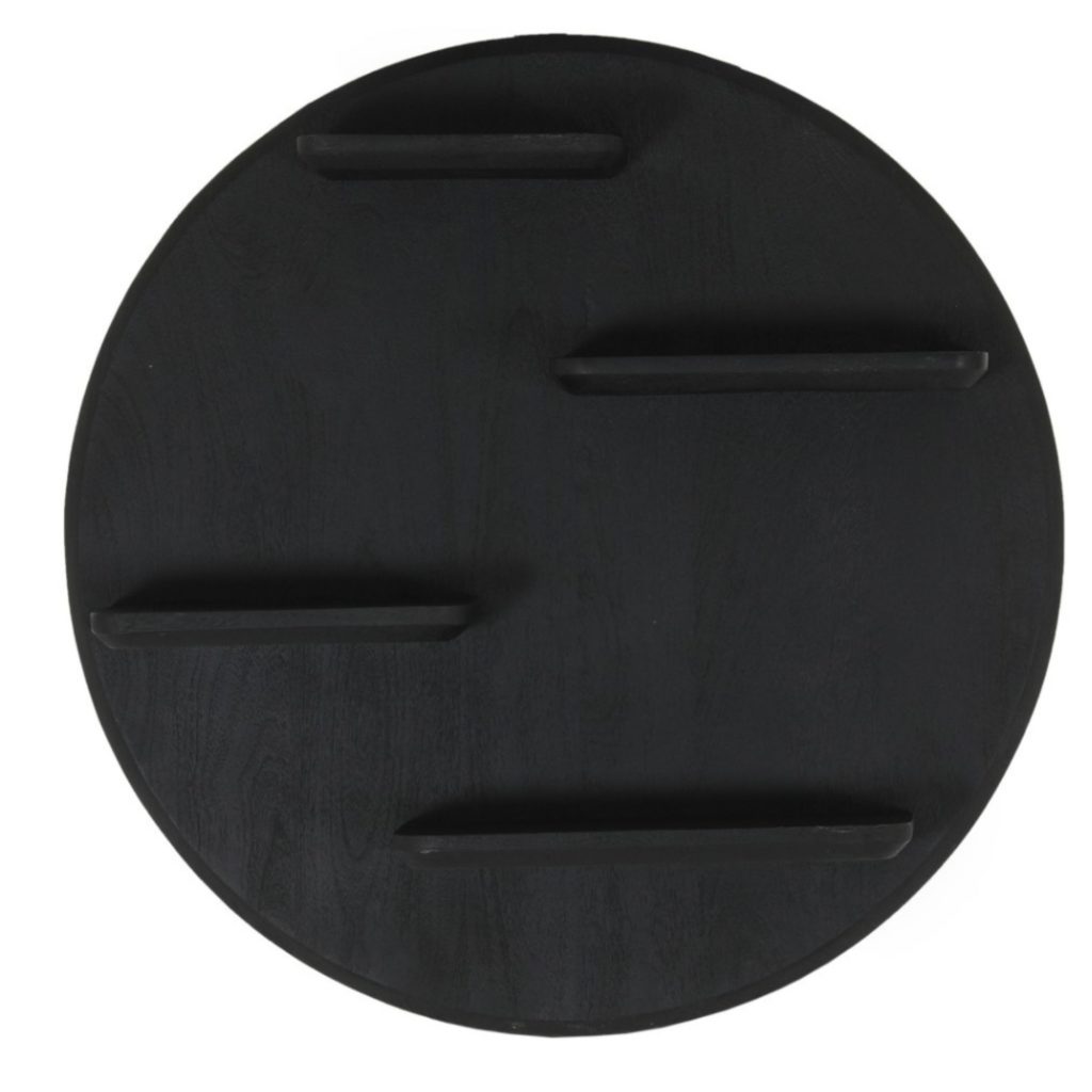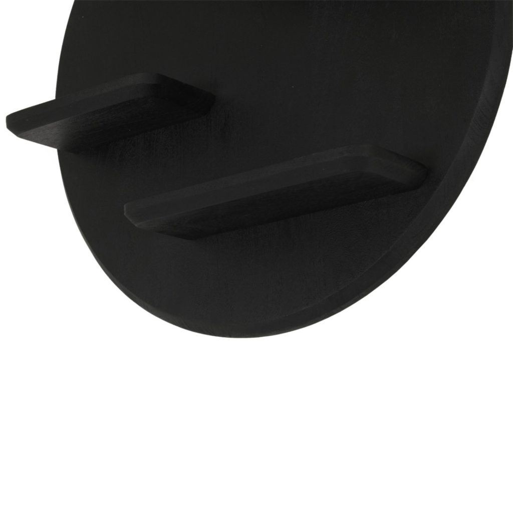 Starfurn Lena wandrek — een handgemaakt, zwart mangohouten rond rek (Ø75 cm) met meerdere legplanken. Strak, modern accent dat lege muren vult in woonkamer, hal of slaapkamer; uniek door kleine onregelmatigheden. Geleverd gemonteerd. Reinigen met lichtvochtige doek.
