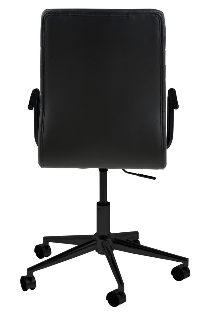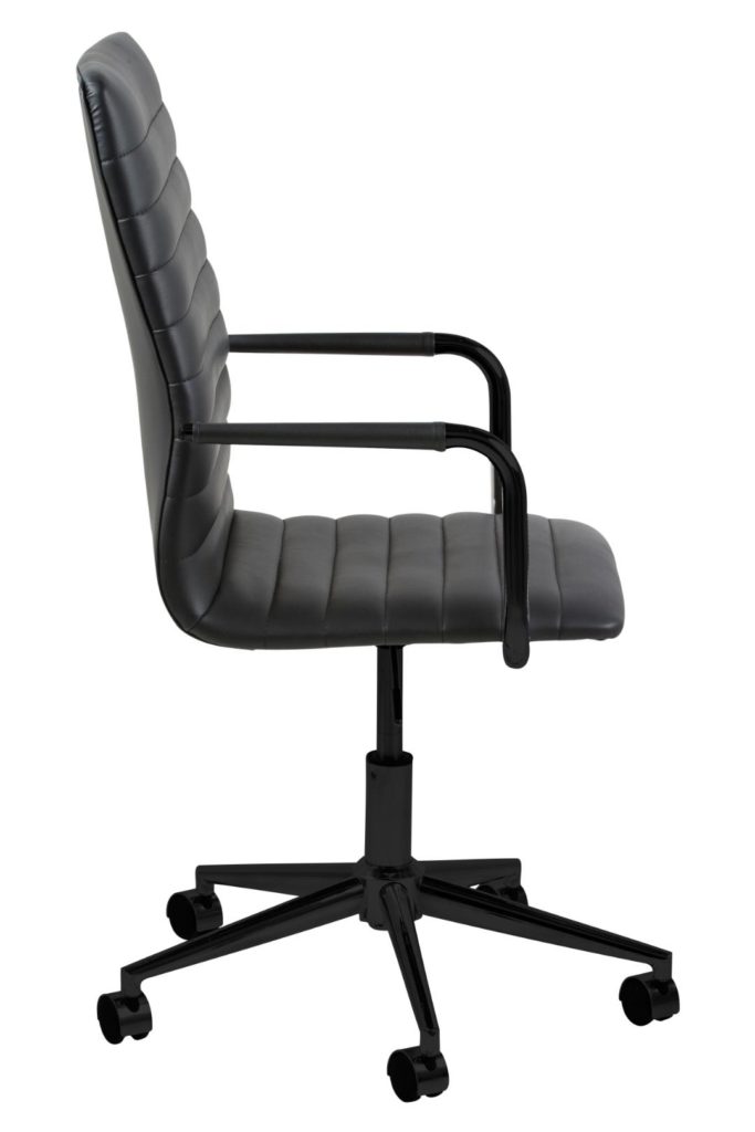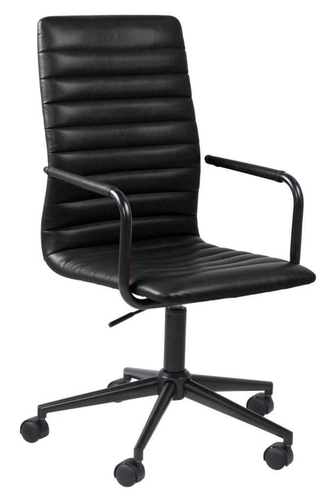 Elegante Winslow bureaustoel met armleuningen, PU zwart BK1, 5-sterren voet van zwart gepoedercoat staal met remwielen, gasveer, hoge rugleuning, horizontale stiksels en draaibaar.