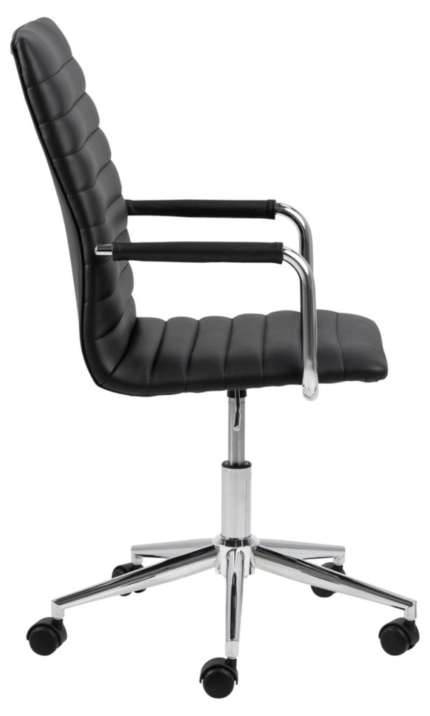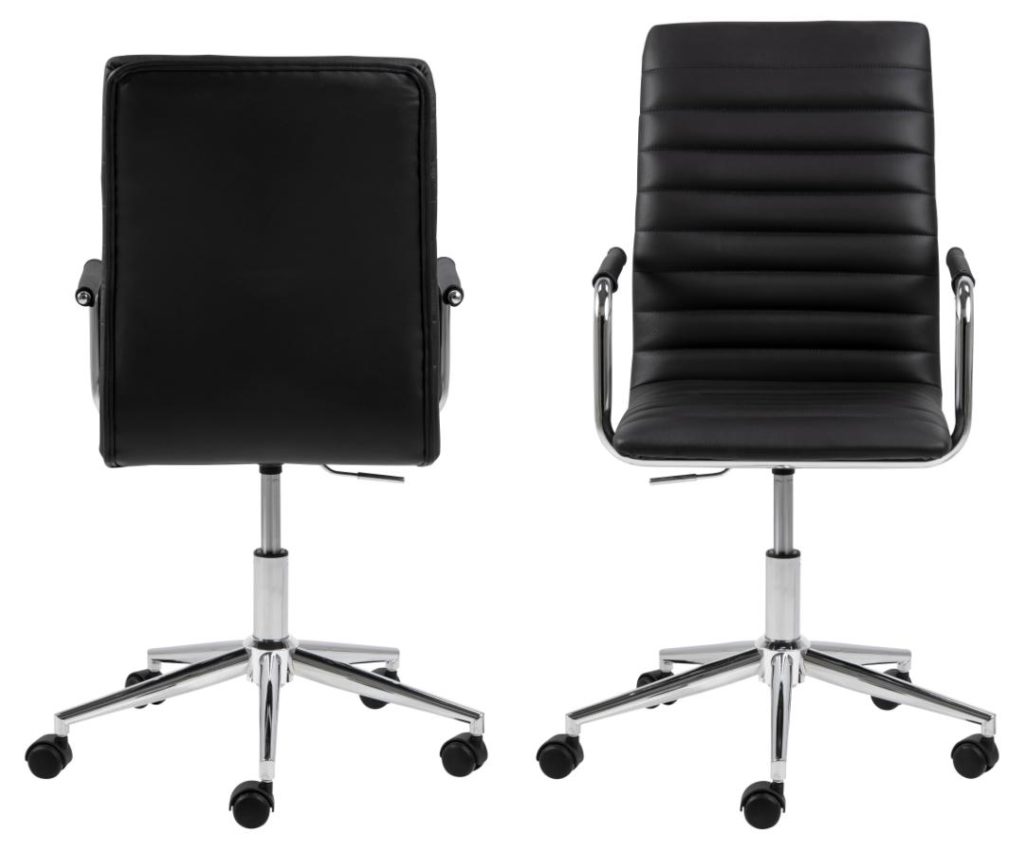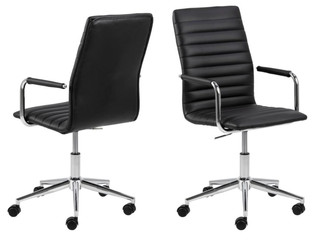 Winslow bureaustoel met armleuningen, zwart Lido, 5-punts chromen stalen basis met remwielen, gasveer, hoge rugleuning, horizontale stiksels en draaifunctie voor stijl en comfort in jouw kantoorruimte.