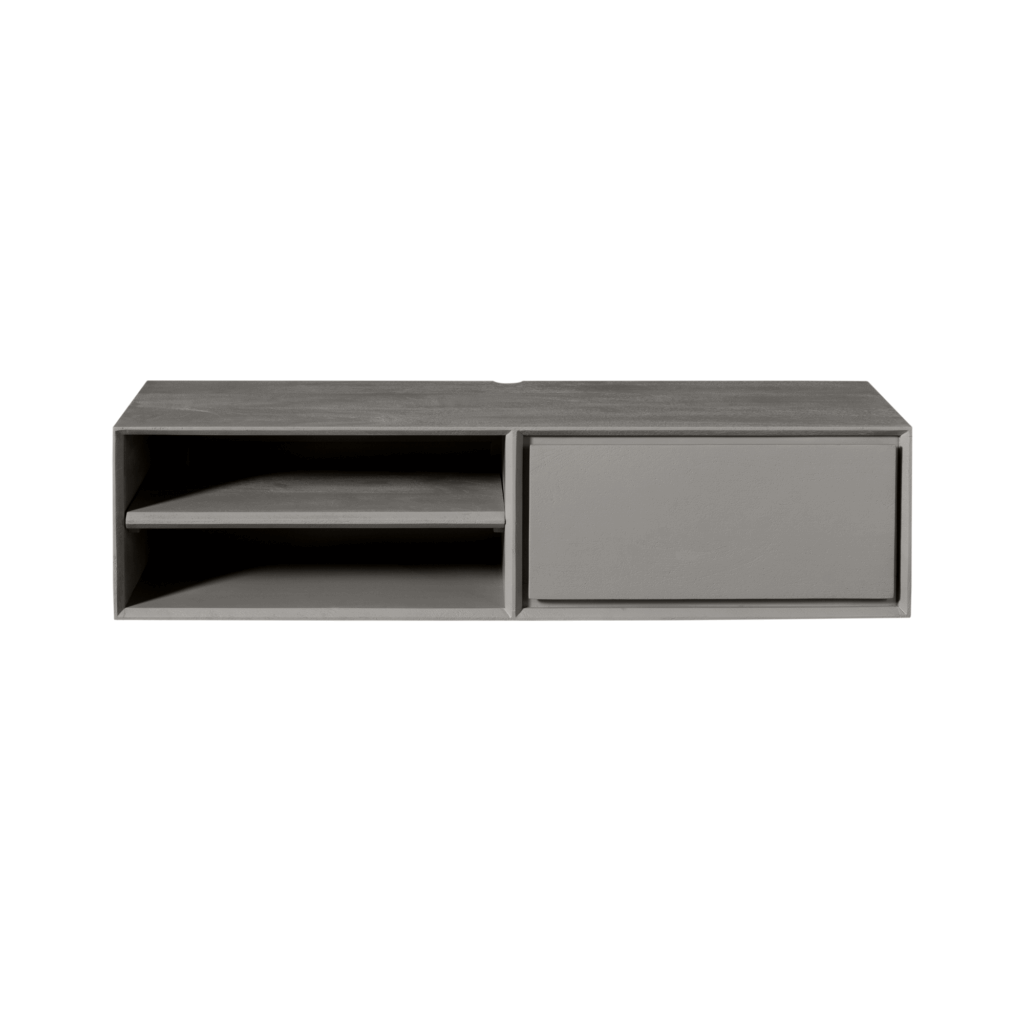 Ontdek het moderne tv-meubel Ambiance Taupe van mangohout. Het zwevende design creëert ruimte en een luchtige sfeer. Verkrijgbaar in diverse formaten en kleuren, past perfect bij elke interieurstijl. Inclusief twee open vakken en greeploze lade. Let op: aan de muur bevestigen en enkel voor muurbevestigde tv's geschikt.
