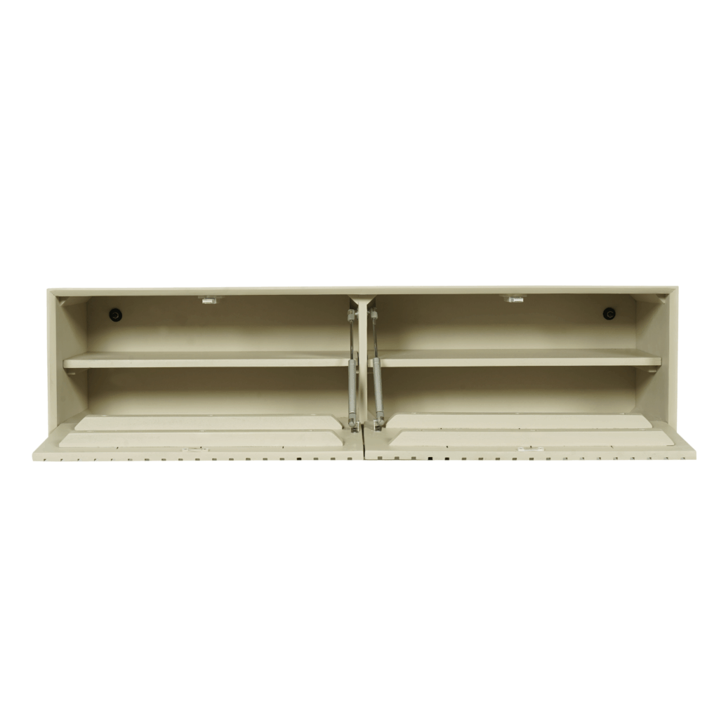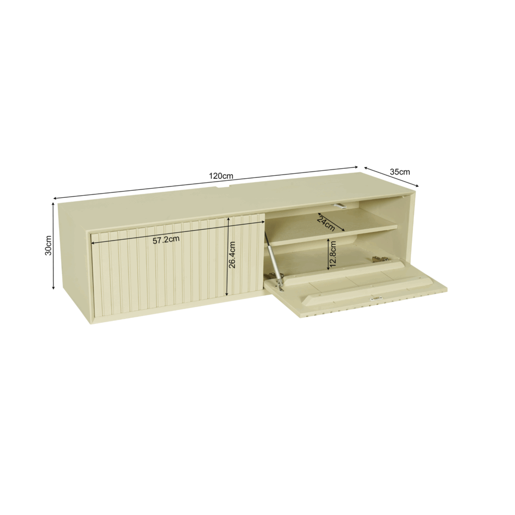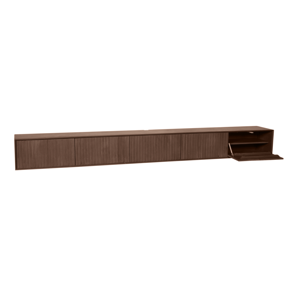 Ontdek het stijlvolle Zwevend tv-meubel Madison Sand, gemaakt uit prachtig mangohout en gedetailleerd met een verticaal lattenpatroon op de deuren. Het zwevende ontwerp schept een gevoel van ruimte in de woonkamer, waardoor een luchtige en open sfeer ontstaat. Met een keuze uit vijf verschillende afmetingen en de kleuren sand, black, walnut en naturel, past het zwevende tv-meubel Madison Sand perfect in elke interieurstijl. Dankzij het push-to-open systeem zijn handgrepen overbodig, wat resulteert in greeploze deurtjes.